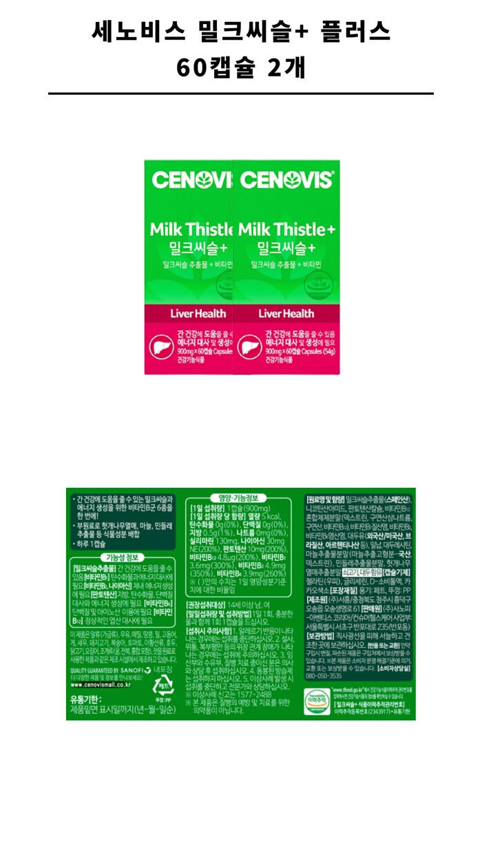 세노비스 밀크씨슬+ 플러스 60캡슐 2개