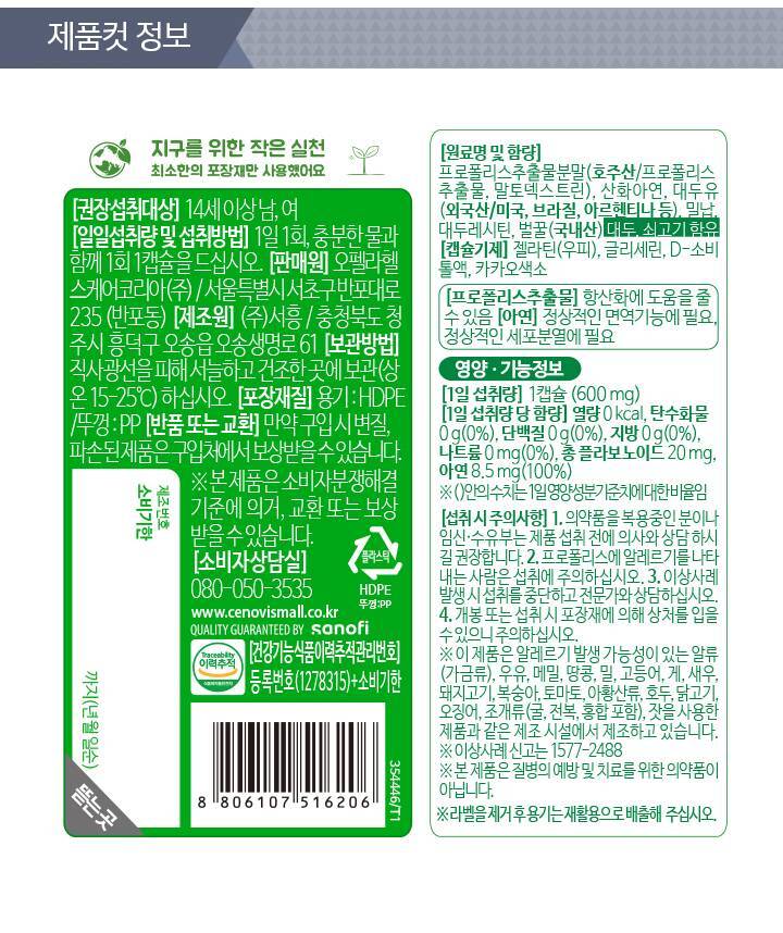 세노비스 프로폴리스+ 80캡슐 x 2개