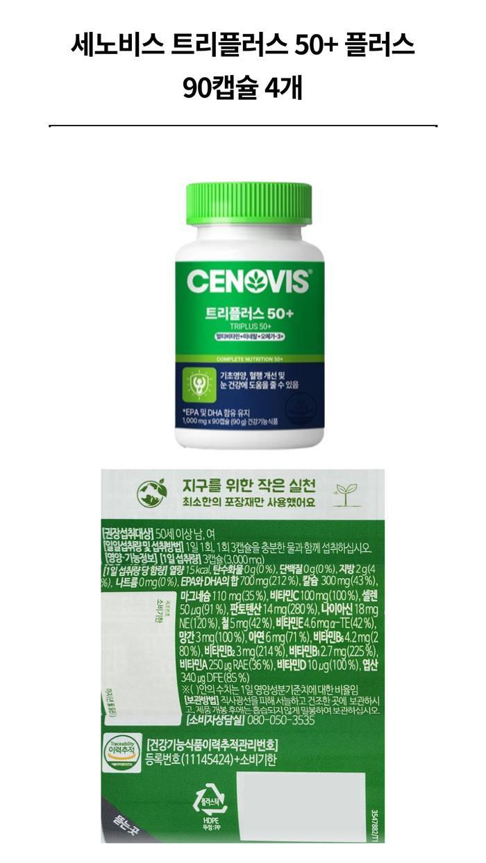 Cenovis Triplus 50+ Plus 90 Capsules (4) / 세노비스 트리플러스 50+ 플러스 90캡슐 4개