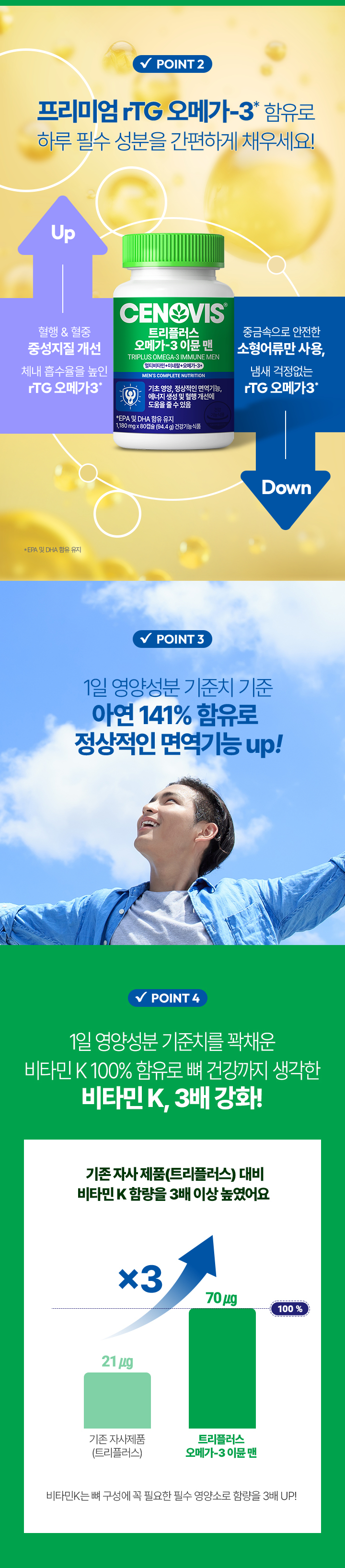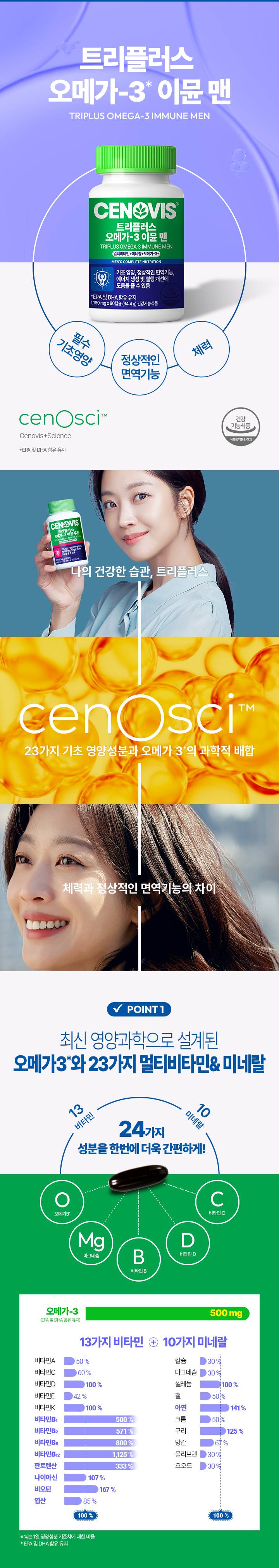 Cenovis Triplus Omega3 Immune Multivitamin Mineral Men 80 capsules x 3 / 세노비스 트리플러스 오메가3 이뮨 멀티비타민 미네랄 맨 80캡슐 x 3개