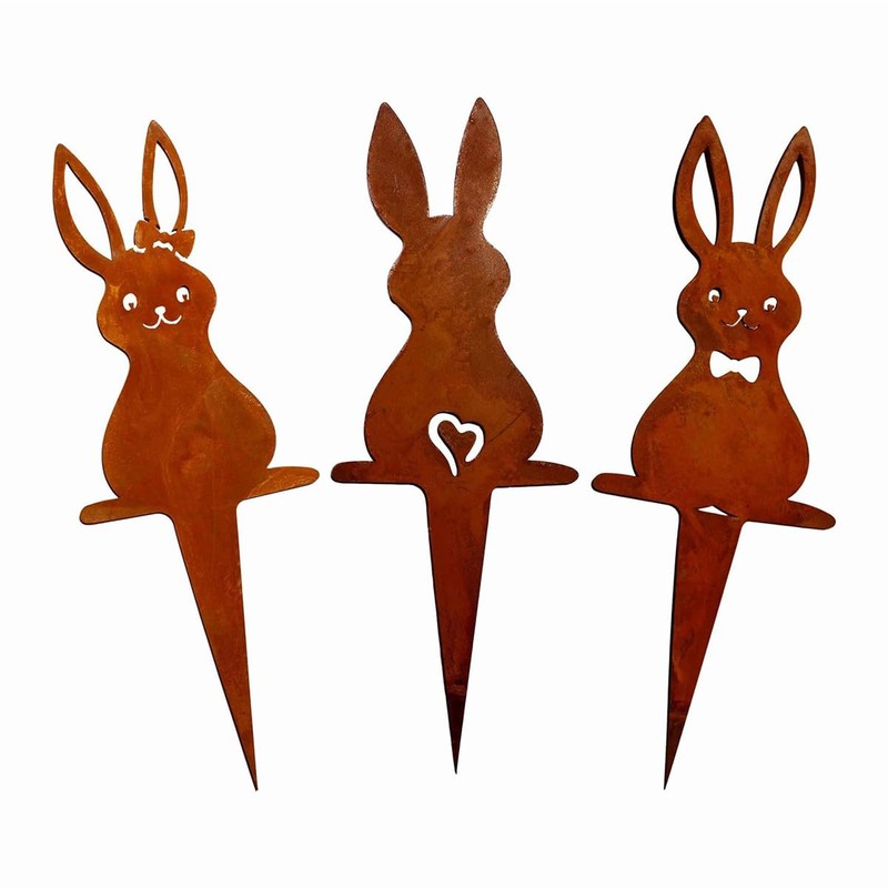 - Add a touch of vintage charm to your outdoor space with our Easter Decoration Rusty Iron Bunny Set. These adorable bunny figures feature a natural patina finish, creating a unique and eye-catching look that is sure to impress.