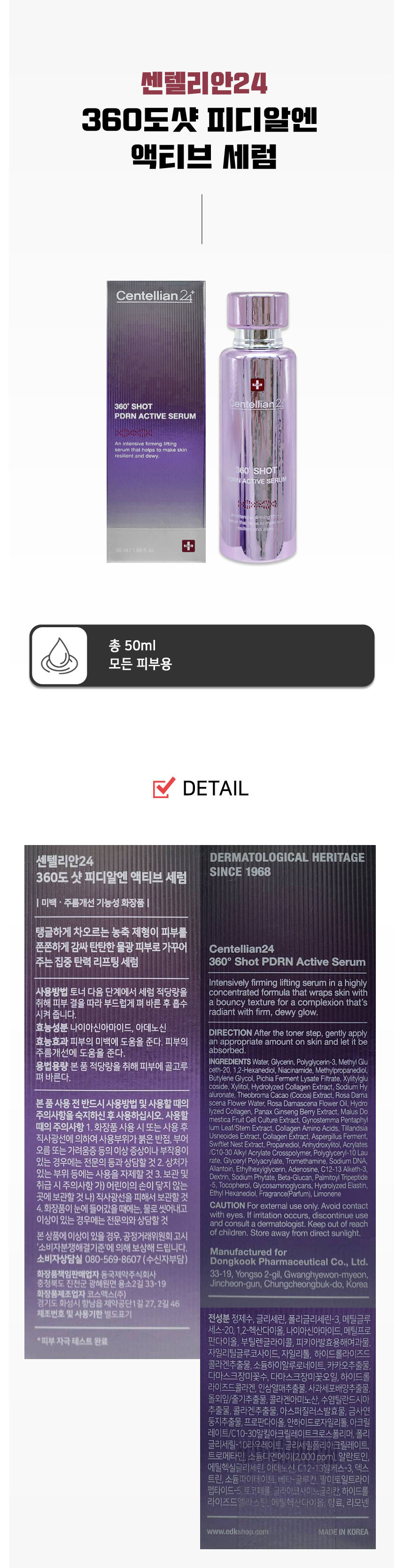 Centellian24 360 Degree Shot PDRN Active Serum 50mlmjc - Single / 센텔리안24 360도샷 피디알엔 액티브 세럼 50mlmjc - 단일