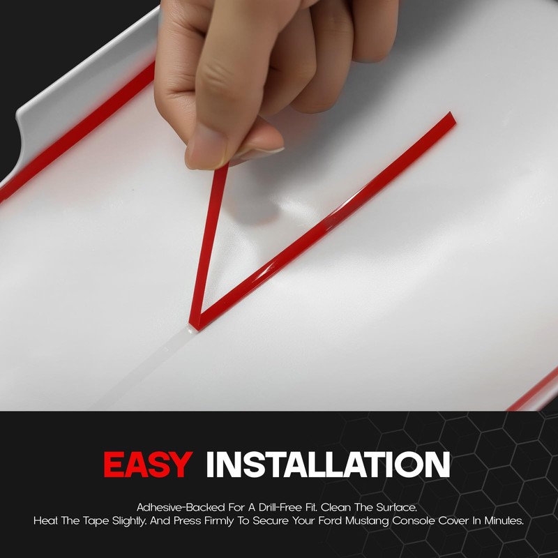 - 【EASY INSTALLATION】 – Adhesive-backed for a drill-free fit. Clean the surface, heat the tape slightly, and press firmly to secure your Ford Mustang console cover in minutes.