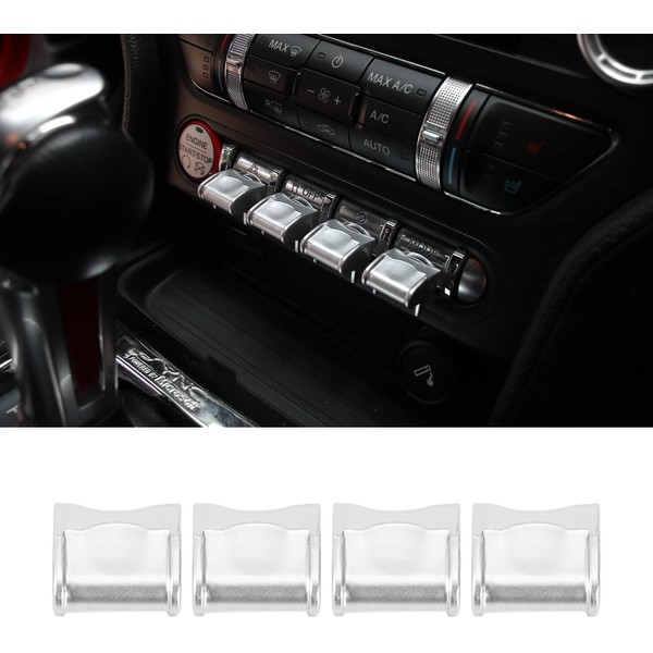 Center Console Dashboard Button Switch Cover Trim Compatible with Ford Mustang 2015-2020 Interior Accessories (Silver)