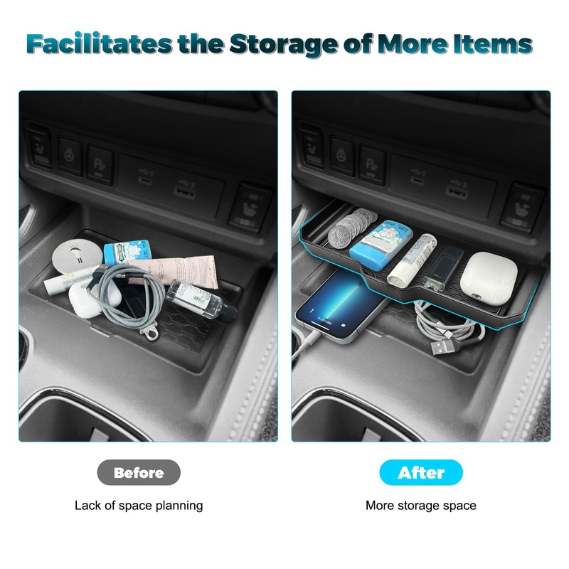 - Increase Storage Space:It can hold some miscellaneous items or glasses. Equipped with anti-slip pads, it won't cause items to slide or collide, reducing noise. Using this product makes it convenient for drivers to access necessary items at any time