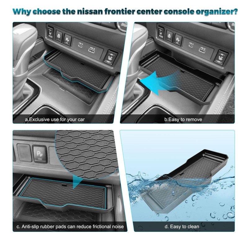 - Compatibility: Compatible with nissan frontier center console organizer 2022-2023 2024 2025 2026 frontier S/SV/Pro-X/Pro-4X and 2024 2025 frontier SL pickup truck , specially designed according to the original vehicle to make sure it highly matching with 2022 2023 2024 2025 2026 Frontier accessories