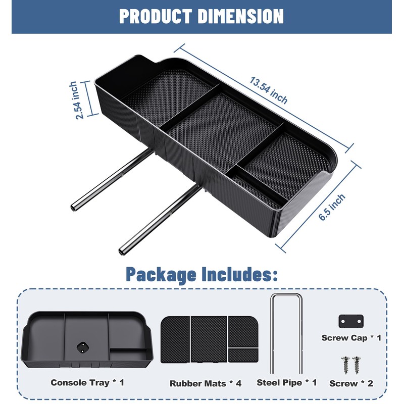 - PREMIUM MATERIAL & NON-SLIP MATS: This Jump Seat Center Console Organizer is made of high-quality ABS plastic tray and stainless steel bar, which are not easily broken and won't deform. Equipped with 4 anti-slip rubber mats, prevents items from rolling around or rattling and making noise while driving