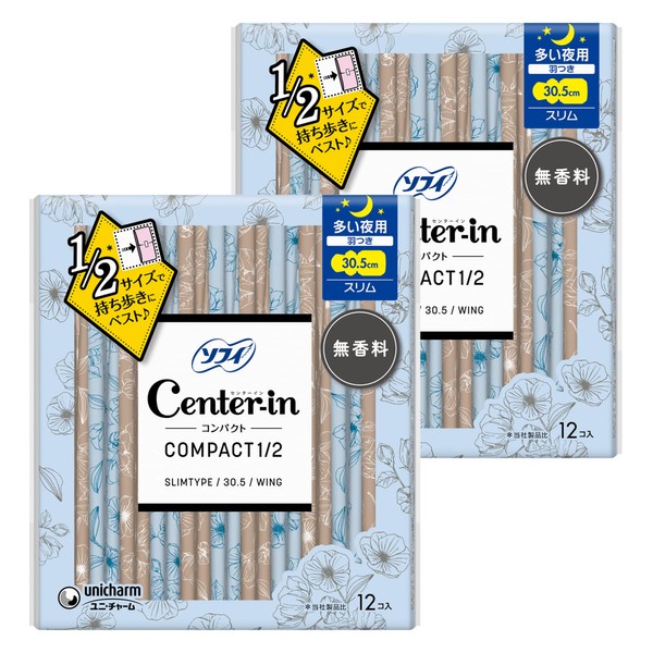 Center-in Compact 1/2 Unscented, For Heavy Nights, With Wings, 24 Sheets (12 Sheets x 2) (Slim Sanitary Napkins)