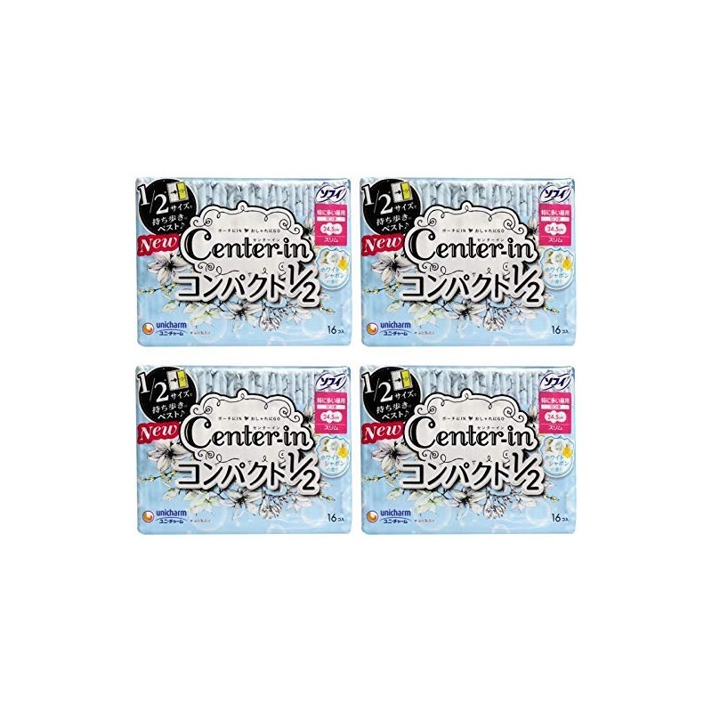 - [Bulk Purchase] Center-In Compact 1/2 White, For Especially Large Daytime, Wings, 16 Pieces (Slim Sanitary Napkins) (4 Pack)