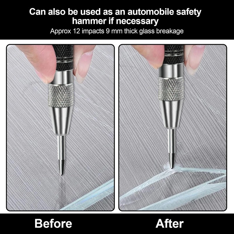 - Widely Used: Spring loaded center hole punch is a necessary gadget for the positioning of wood, aluminum, iron, steel, marble, glass and other projects, and can also be used in vehicle emergencies as a tool for breaking glass windows