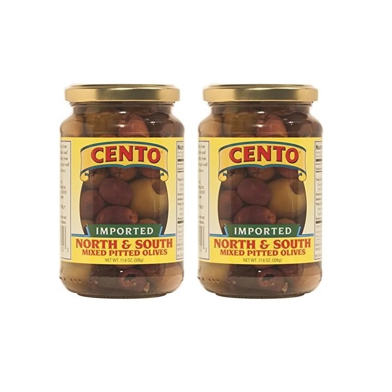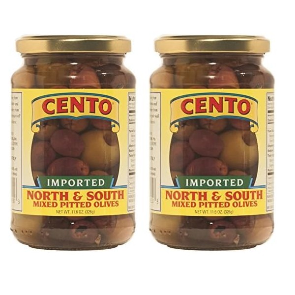 Cento Cento Imported North & South Mixed Pitted Olives, 11.6 Ounce (Pack of 2)