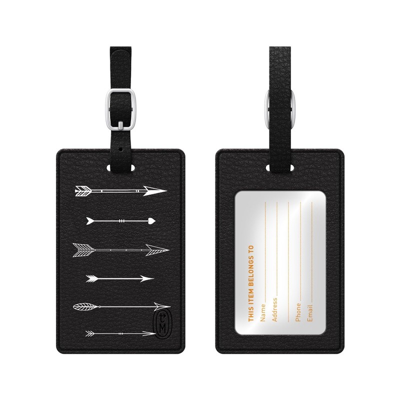 Centon OTM Essentials Black Leather Bag Tag, Shooting White Arrows