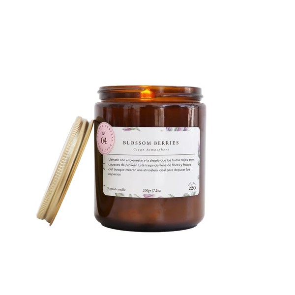 Central 220 | Vela Aromática Blossom Berries | frutos rojos, flores, lima, naranja y violetas. | Aromaterapia: Alegría | 200g | Duración 40-60 Horas
