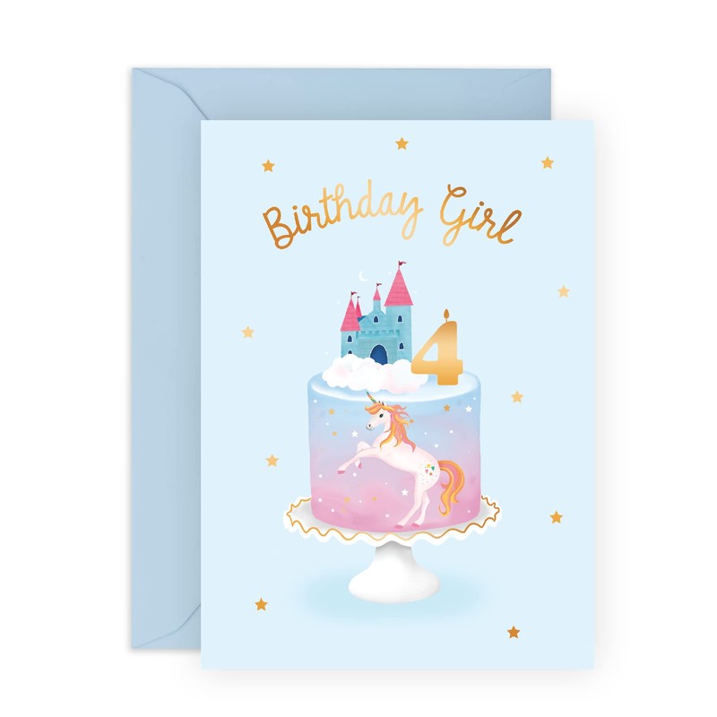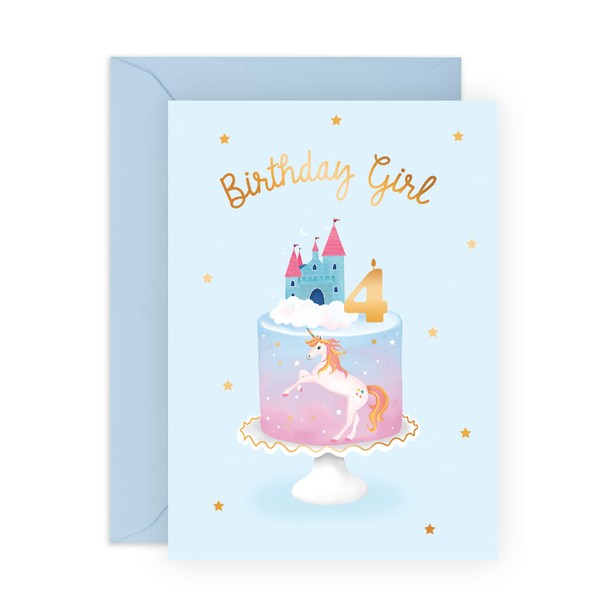 CENTRAL 23 4th Birthday Card for Girls – Unicorn and Castle Cake – Cute Card for Daughter, Niece, Granddaughter, Children, Child, Kids - Age 4, Turning Four Years Old - Comes with Fun Stickers