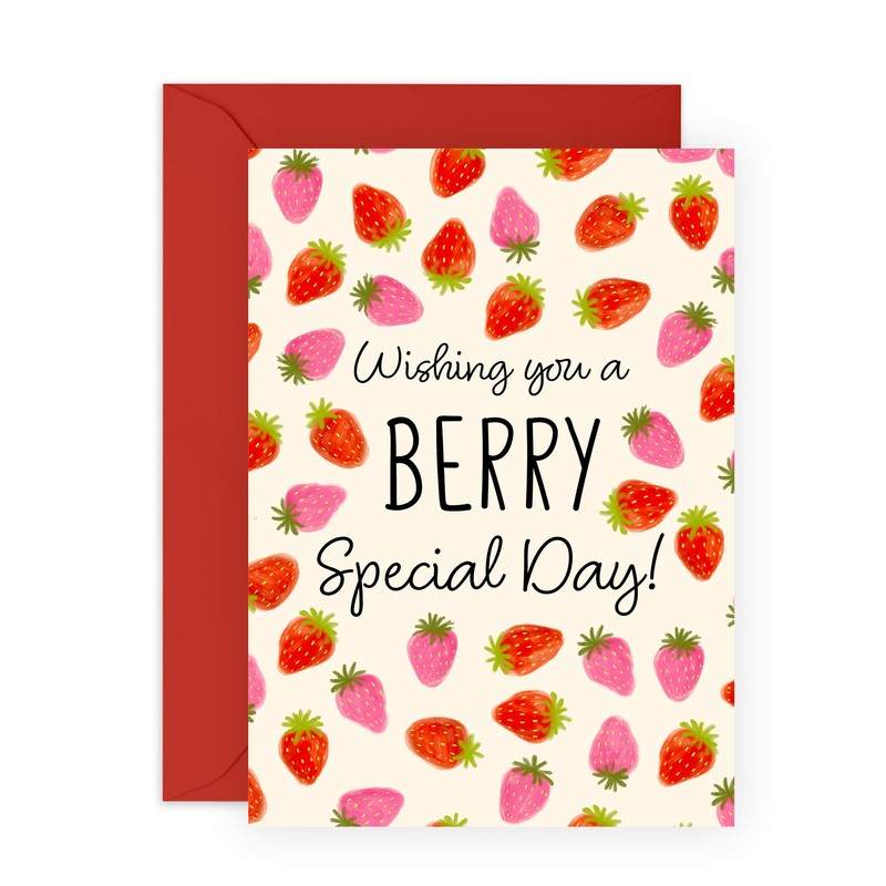 CENTRAL 23 Berry Wish Birthday Card - 'Strawberry Day' - Gifts for Friends, BFF, Aunt, Family, Cousin, Colleagues, Girlfriend, Relatives, Sister - Fruity - Comes with Fun Stickers