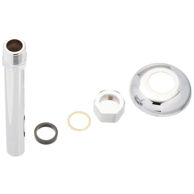 The standpipe has a 3/4-inch female brass nut for connection to the urinal spud. The flange is chrome plated brass. The standpipe is 3/4-inch 19-gage chrome plated brass tubing. The 1/2-inch male tapered pipe adaptor for connection to the urinal valve is chrome plated brass.