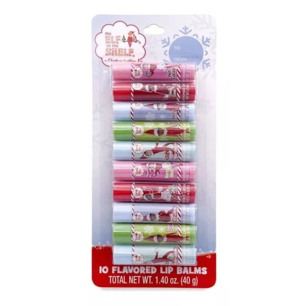 The Elf on the Shelf - Paquete de 10 bálsamos labiales con sabor; Es un gran regalo para Navidad, amigo secreto o regalo de Navidad Prepárate para una diversión navideña festiva con estos bálsamos labiales Elf on the Shelf de 10 sabores. Proporciona la combinación perfecta de hidratación y excelentes sabores navideños. Es el relleno perfecto de calcetines! Todos nuestros productos estan en inglés SKU 14072216591