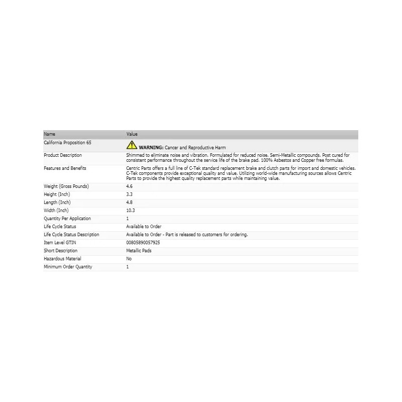 Centric OEM REAR SEMI-METALLIC BRAKE PADS LEFT & RIGHT SET FOR 1997-1998 ASTON MARTIN DB7