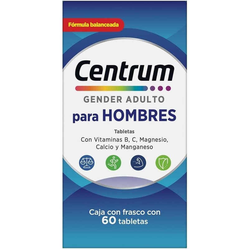 Centrum Gender Adulto Hombre Multivitamínico, Con Vitamina B, Vitamina C, 60 Tabletas