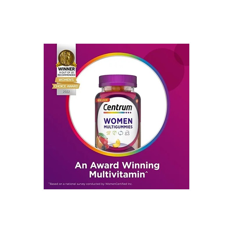 Centrum MultiGummies Multivitamínico/Multimineral para Mujeres con Vitamina D3, Vitaminas B y Antioxidantes Sabor Frutas 170 Gomitas