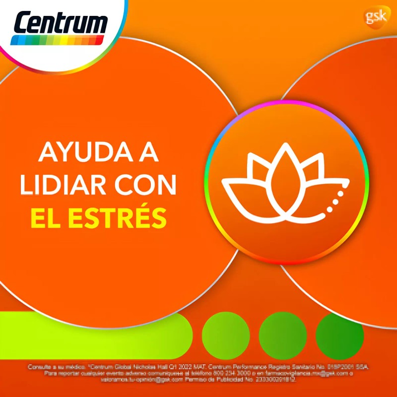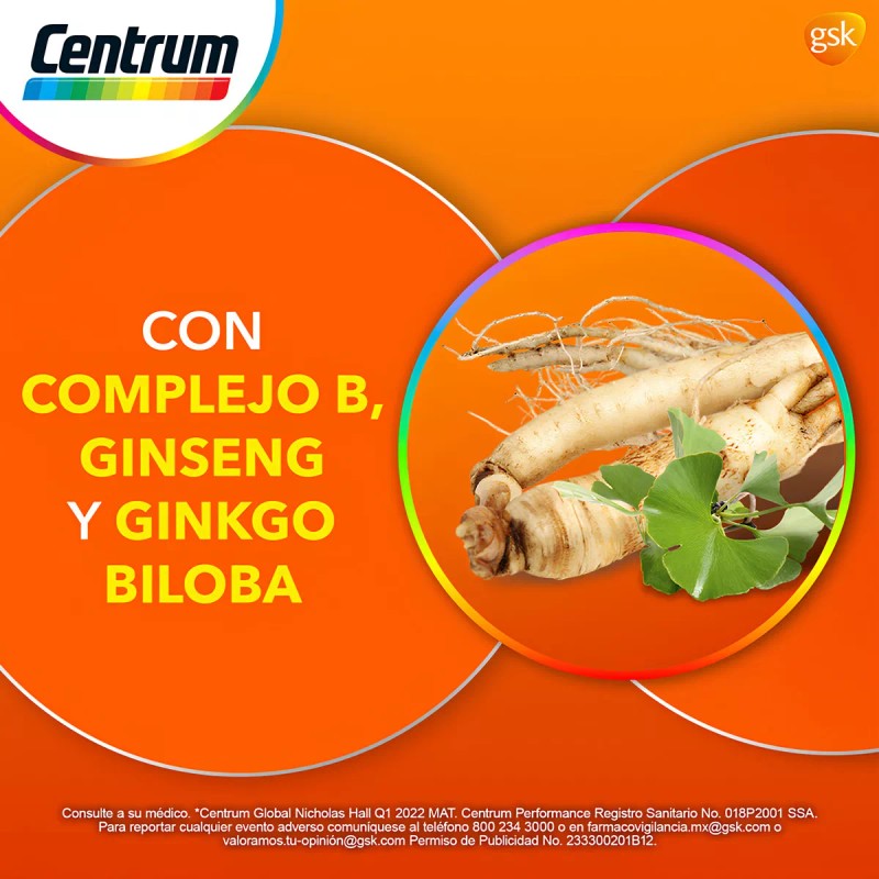 La formulación de Centrum Performance incluye el complejo de vitaminas B que respaldan el metabolismo energético y son esenciales en la conversión de carbohidratos, grasas y proteínas en energía. La vitamina D es importante para la salud de los huesos y músculos, mientras que los antioxidantes combaten los efectos del estrés.