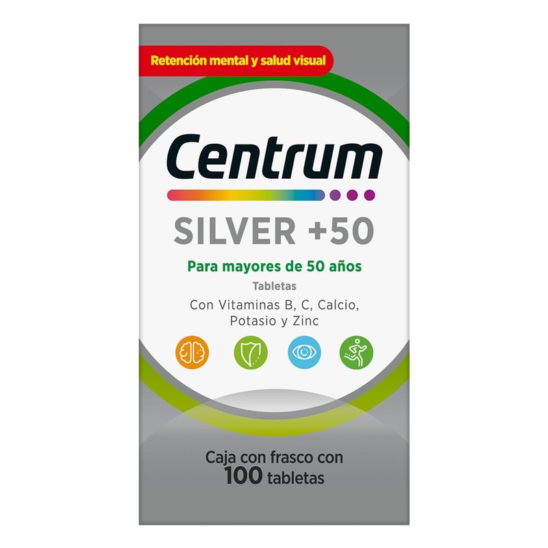 Centrum Silver +50 Multivitaminico, Con Vitamina B, Vitamina C, 100 Tabletas