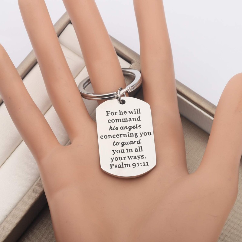 CENWA Bible Verse Keychain for He Will Command His Angels Concerning You to Guard You in All Your Ways Religious Jewelry Christian Gift Psalm 91:11 Gift (for he Will K)