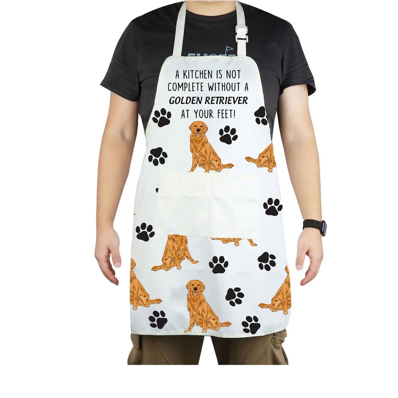 CENWA Golden Retriever Apron With Pockets Golden Retriever Gifts Adjustable Cooking Apron For Animal Dog Lovers (Golden Retriever apron)