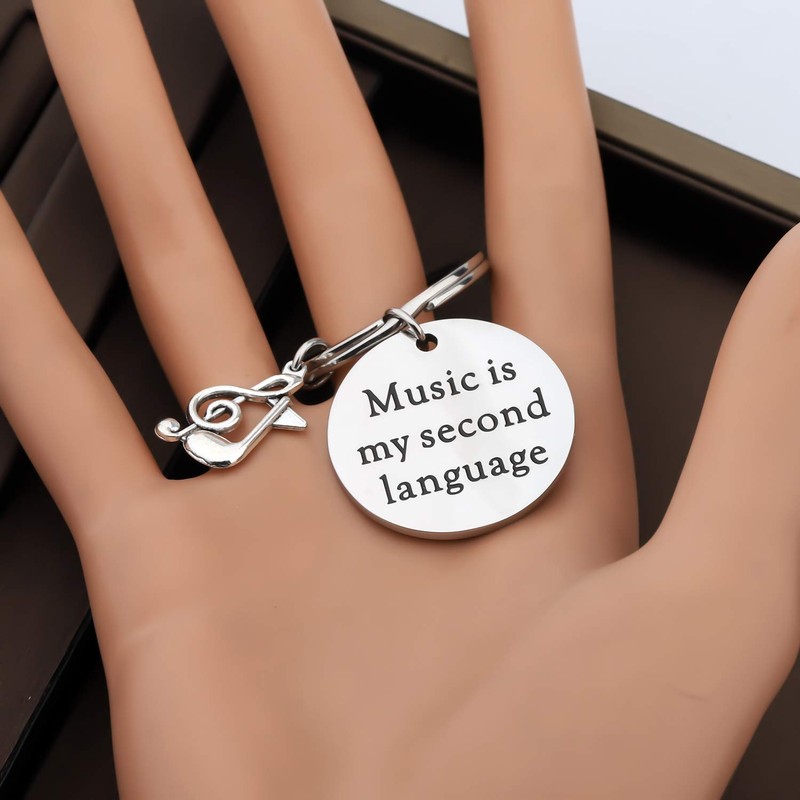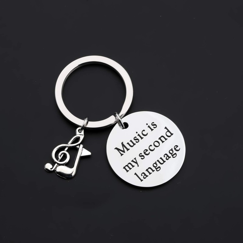 - Engraved with the sentence " Music Is My Second Language ". We only stamp on one side of the keychains!