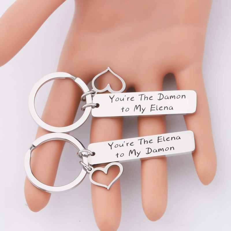 - Engraved with the sentence "You're the Elena/Damon to my Damon/Elena ". We only stamp on one side of the keychains!