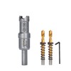 - 【Package】 1x Carbide Hole Saw, 2x Pilot Drill Bit, 1x Hex Wrench, which are packed in a plastic box