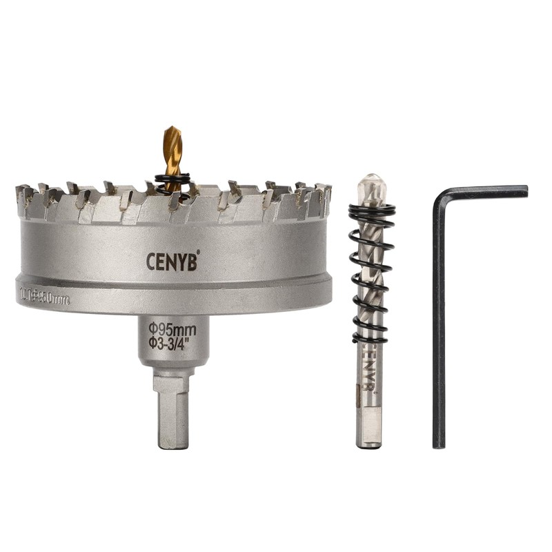 CENYB 3-3/4" (95mm) Tungsten Carbide Tipped Hole Saw with 2Pcs Titanium-Plated Pilot Drill Bits for Metal, Steel, Iron, Wood, Plastic
