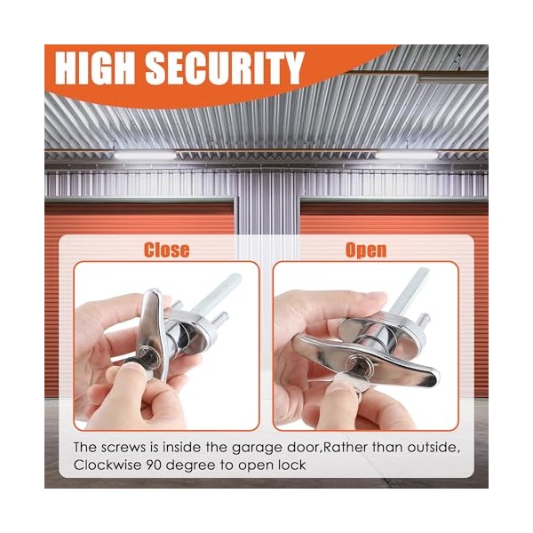 - Flexible T Turn Lever: The exterior T turn lever can be left unlocked for rapid entry and exit, or securely locked after each use. Inside lift lever can always be applied to exit the garage, to prevent "locked in" situation. This garage door lock replacement system adds convenience without compromising safety