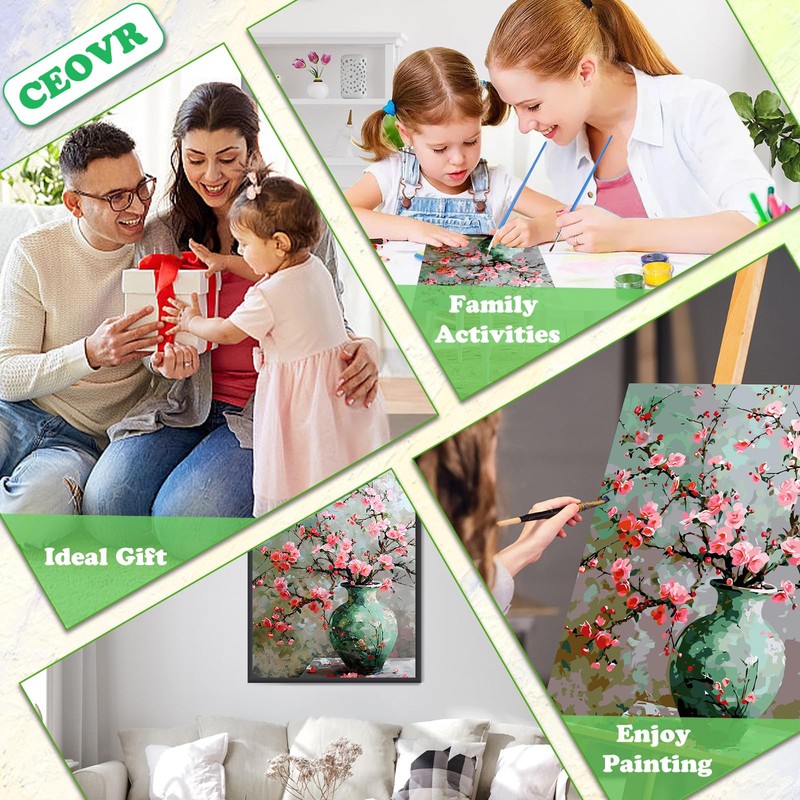 - 【Do you want to have your own paintings? 】Are you worried about wanting to create but not knowing how to compose? Don’t worry, CEOVR has been focusing on the DIY handmade market for more than ten years. With this adult paint by numbers kits, you only need to apply paint to the same numbers on the canvas to complete the creation.