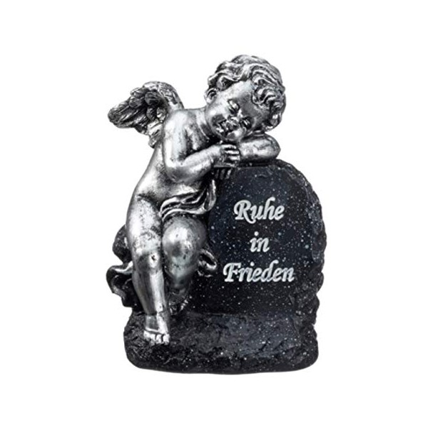 Cepewa Gravestone Angel with Saying Polyresin Memorial Stone Grave Decoration Black