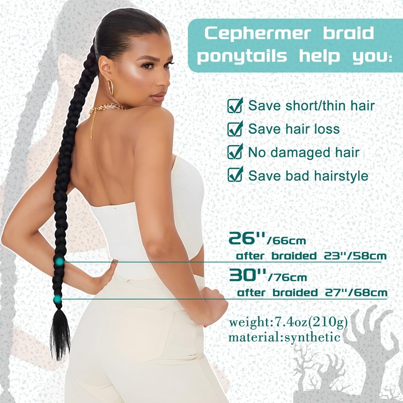- Instant Transformation: Elevate your look effortlessly with our Cephermer long braided wrap ponytail extension. Change your hair color, style, length, or texture without the commitment or damage caused by chemicals and heat
