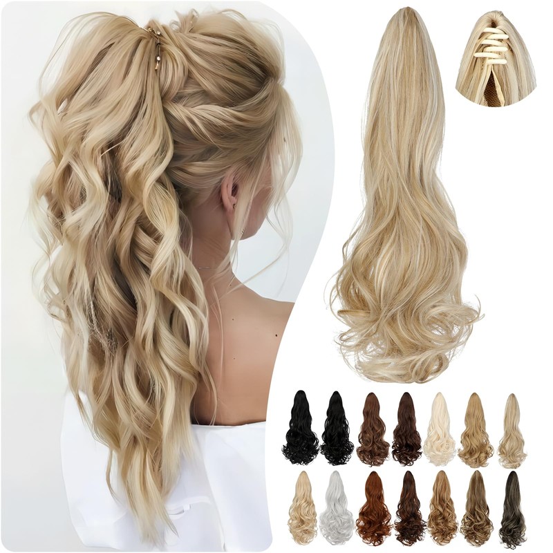 Cephermer Ponytail Extension Claw 18" Long Curly Wavy Clip in Natural Looking Synthetic Hair Extension Ponytail Hairpiece for Women Ash Blonde Mix Light Bleach Blonde