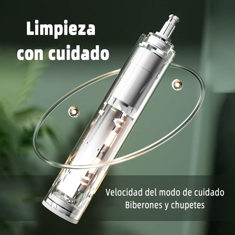 - Uso fácil y sin preocupaciones: nuestro juego de cepillos para biberones incluye un "mango eléctrico", un "cepillo para biberones", un "cepillo para pajitas" y un "cepillo para chupetes", eliminando la molestia de limpiar biberones, boquillas y pajitas. Además, el mango es suave y antideslizante para máxima comodidad.