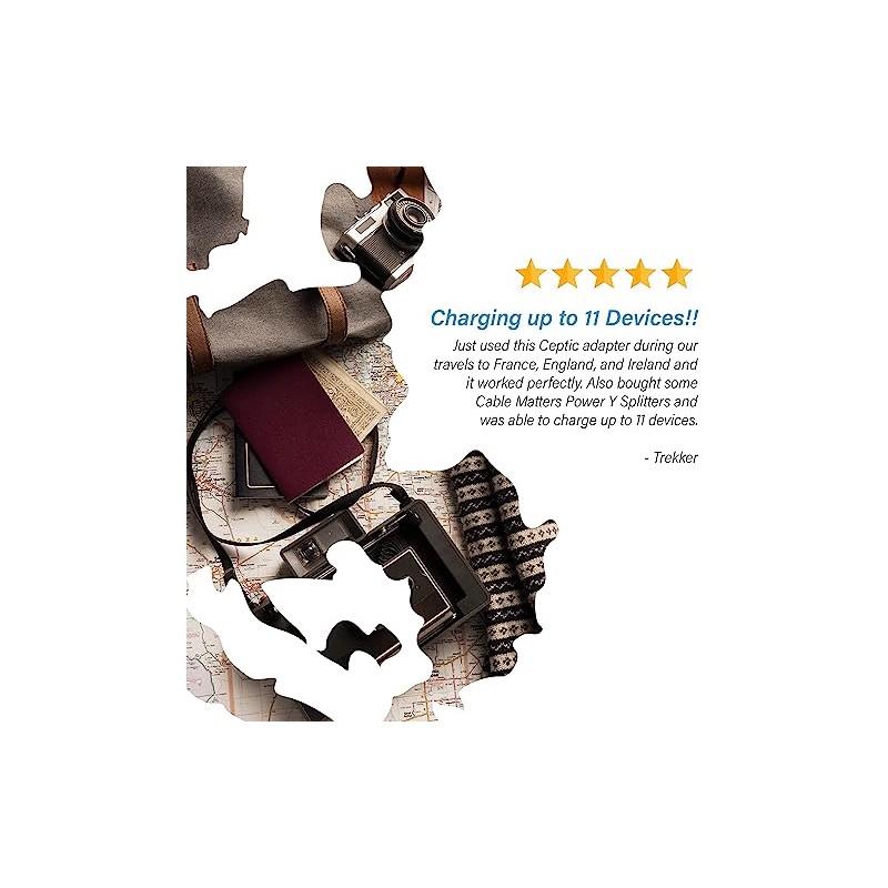 Ceptics Ceptics Safest Travel Adapter Kit, Dual USB for iPhone, Chargers, Cell Phones, Laptop Perfect for Travelers - 3.6A with Qc. 3.0 Charge Faster