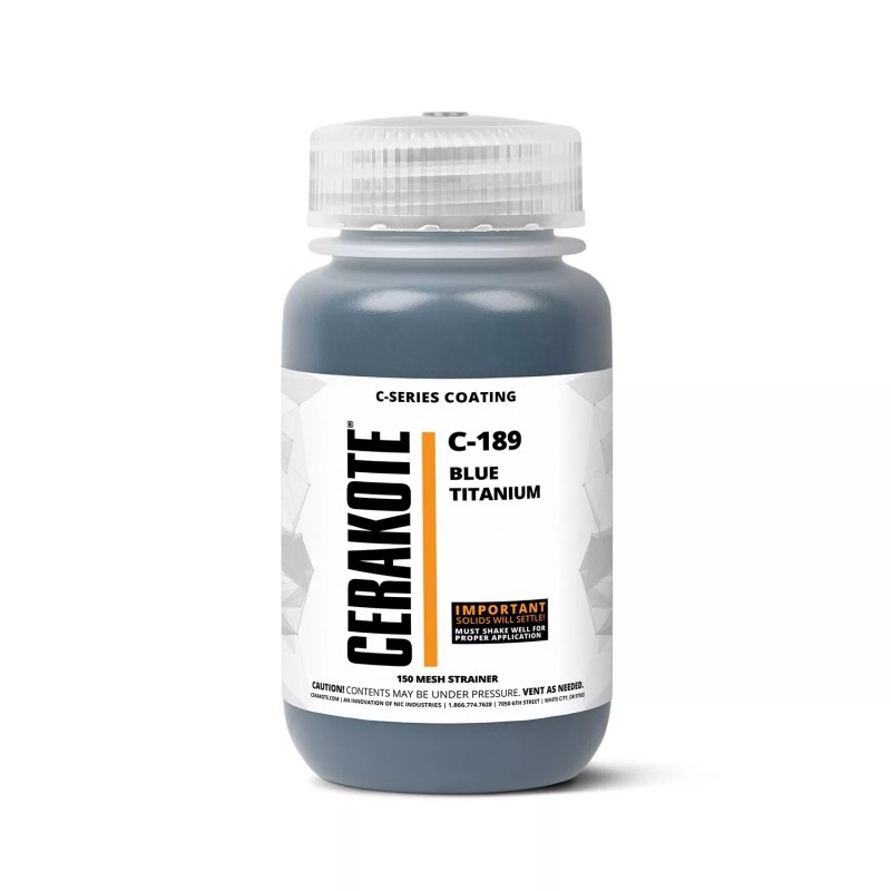 Cerakote Blue Titanium is a medium blue with silver metallic. *NOTE: This product does not require catalyst. This color does require a 100 Mesh Strainer (SE-275) Cerakote Blue Titanium C Series Ceramic Coatings will perform at temperatures up to 1600°F and set the industry standard in high temperature coatings. C Series coatings are a line of air cured, ready to spray ceramic coatings.