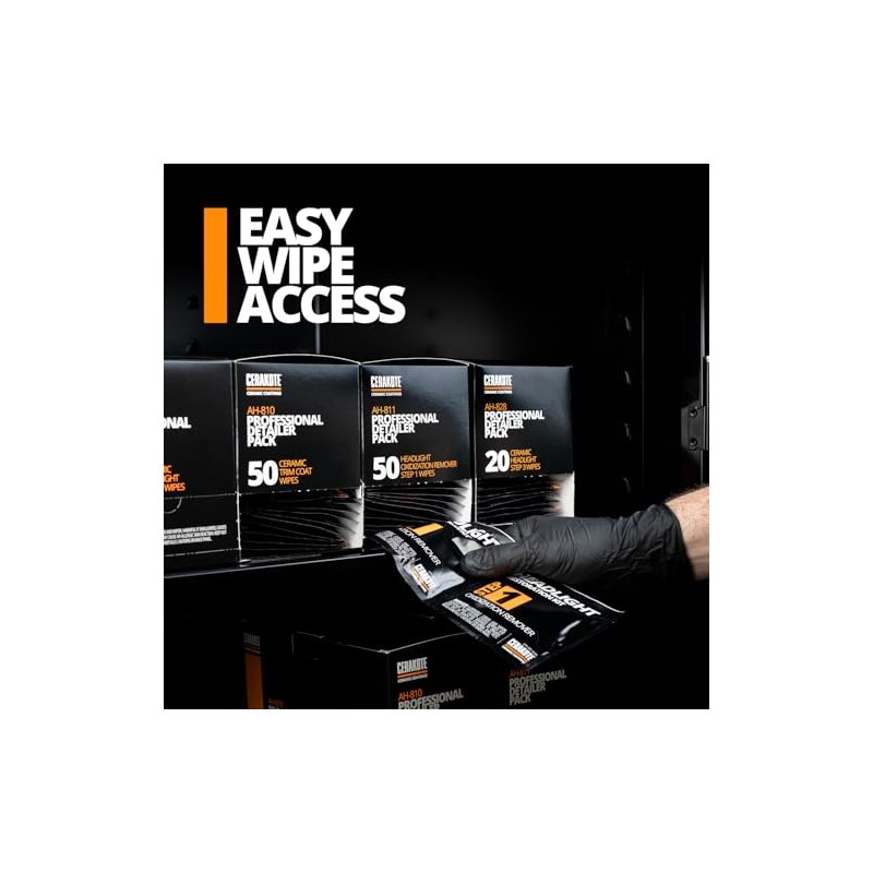 CERAKOTE® Ceramic Headlight Restoration Professional Detailer Pack (50 Step 1 Oxidation Removing Wipes) - Easily Remove Oxidation from Old and Faded Headlights