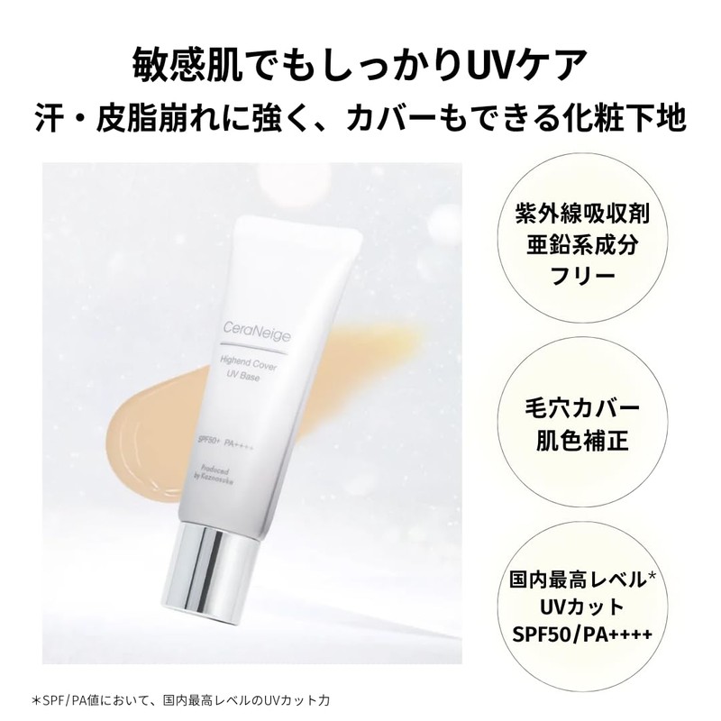 CeraLabo High-end Cover UV Base (1.1 oz (30 g) SPF 50+/PA++++ Cosmetic Base CC Cream, UV Absorber Free, Zinc Oxide Free, Sebum Collapse, Unisex, Unisex, Sensitive Skin, Oily Skin, Dry Skin, Mixed