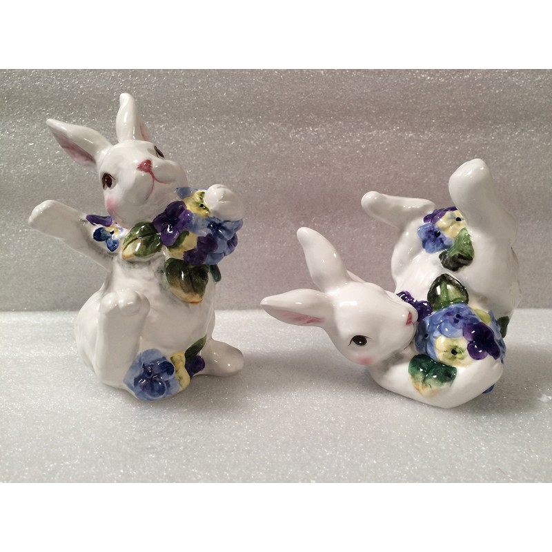 - Bunny Rabbits Couple Floral Salt Pepper Set Shakers