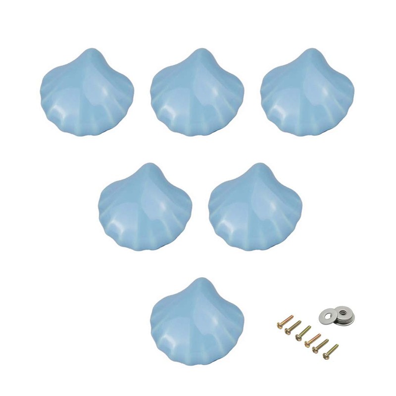 Ceramic Cabinet Handles Dresser Knobs Drawer Pulls for Kid's Room Door Handles Cupboard Knobs Lovely Shell Handles 6 Pack Blue