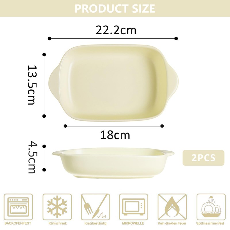 - Small lasagna baking dish: the mini casserole dish measures 22.2 x 13.5 x 4.5 cm and is therefore ideal for one or two people. You will receive 2 ceramic casserole dishes.