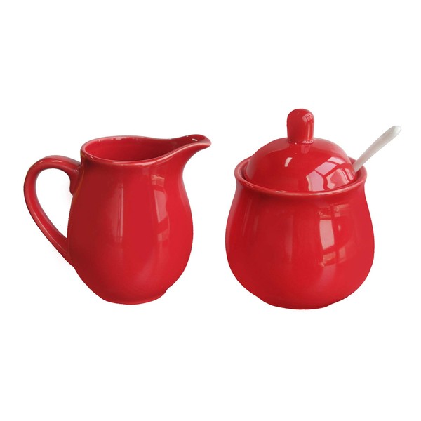 - Feature: Drip-free spout and comfort-grip handle and one sugar bowl with lid and spoon,keep table clean. Lid to keep sugar stored away.