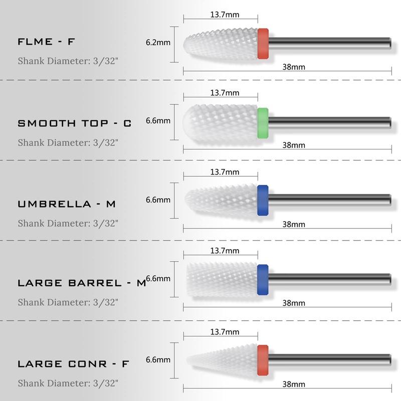 - Fit Most Nail Drill Machine: Universal 3/32-inch (2.35mm) size stainless steel shank suits for most nail drills for acrylic nails professional, perfect for nail salon, beauty parlor, spa or personal manicure pedicure, DIY nail art at home.