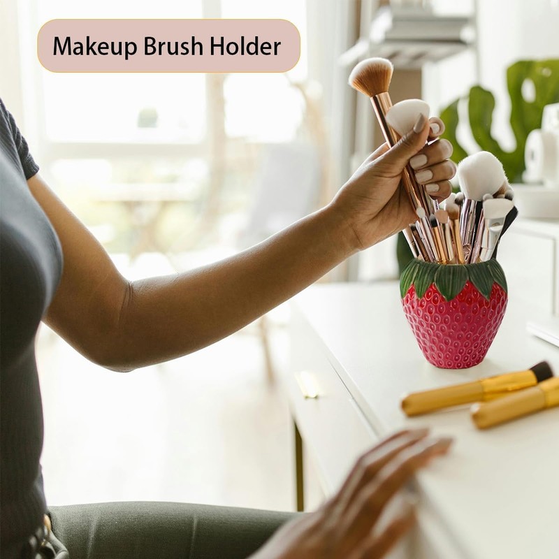Ceramic Pen Holder, Cute Pen Holder for Desk, Pen Stand Makeup Brush Holder for School, Home, Office(Strawberry)
