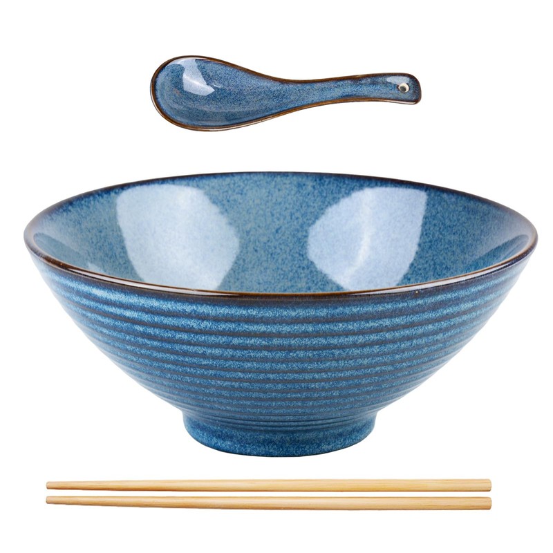 Ceramic Ramen Bowl,Japanese Ceramic Noodle Bowl Set Large 8 Inch Soup Bowl with Ramen Spoon and Chopsticks 1000ml