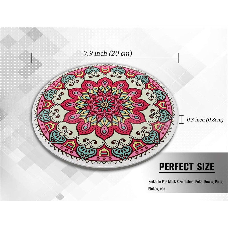 Ceramic Stone Trivet for Hot Pots and Pans, Insulated Dish Pads, Scratch Proof Cork Base, Protector for Dinning Room Table, Round 7.9 Inch Set of 2